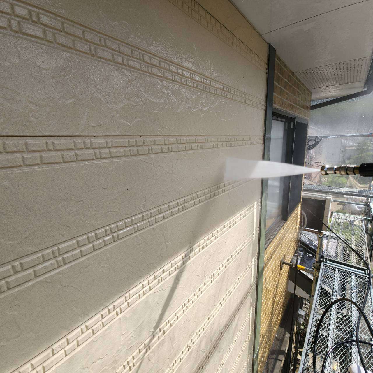 ・外壁を高圧な洗浄機で洗う(至近距離)