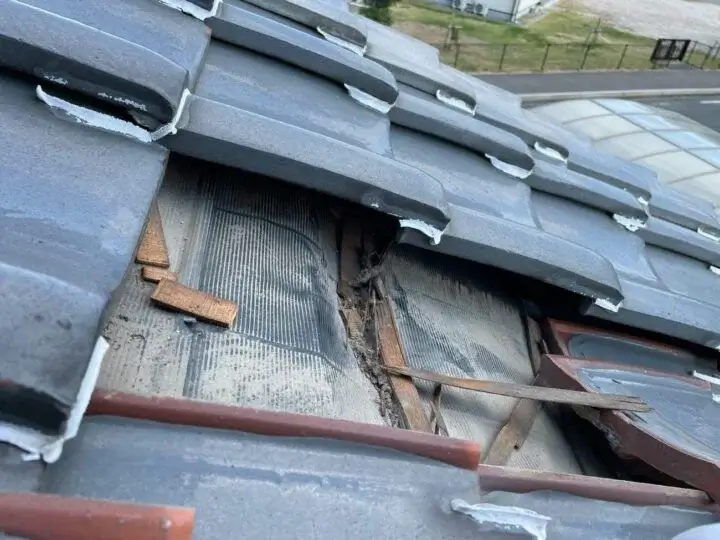 また、ストレートや瓦などの屋根材に破損・脱落・強風による消失があり