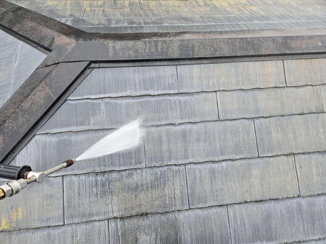 高圧洗浄でしっかり落とさないとどんな高耐久塗料でも本来の性能は出ません。