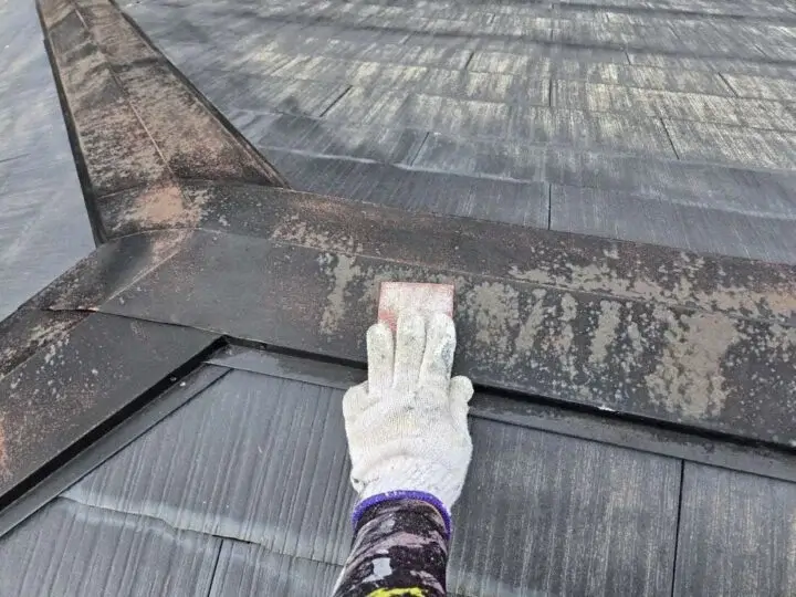 屋根の頂上部分にある板金が浮くと、雨水侵入の原因になるため要注意です。