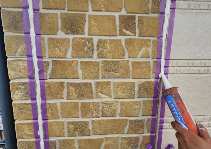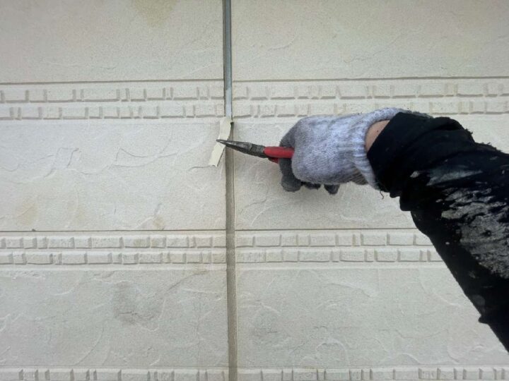 古くひび割れてしまった既存のシーリングをカッターなどを用いて撤去します。【下地補修】既存シーリング撤去
