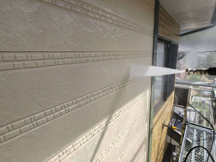 上塗りは、中塗りの塗りムラを塞いで塗膜に厚みを付け、仕上がりのきれいな外壁塗装を実現するとともに、外壁の耐久性と美観を高めます。【外壁】下塗り