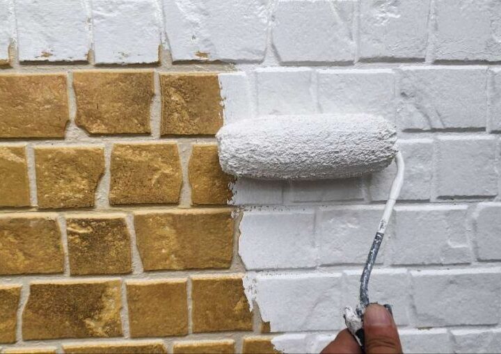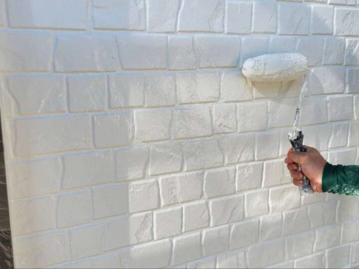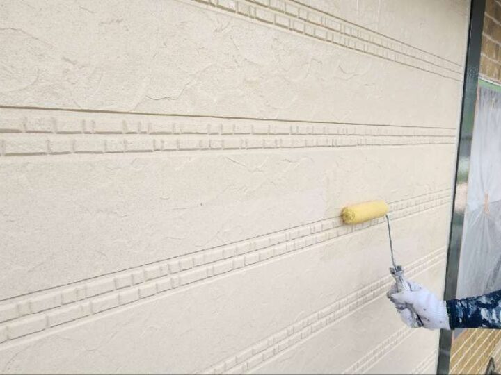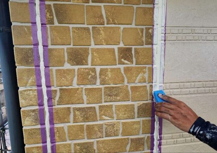 下地の状態に適した塗料で綺麗に塗っていきます。【外壁アクセント】中塗り