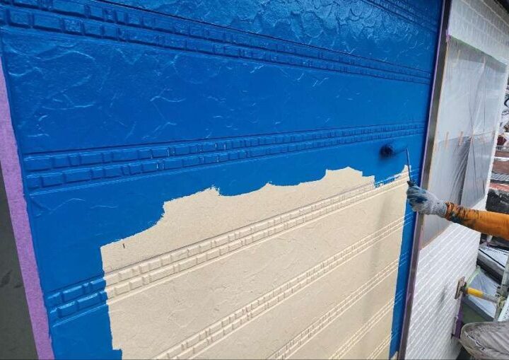 鮮やかなブルーを塗っていきます。【外壁】上塗り