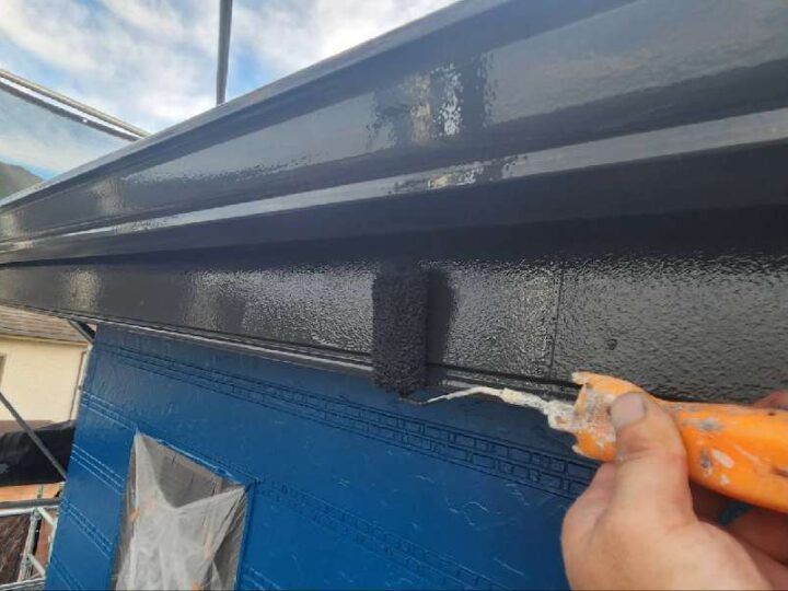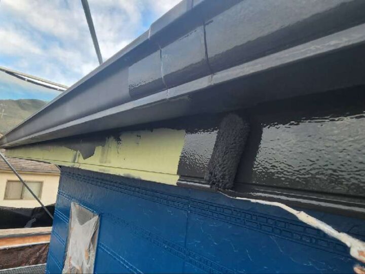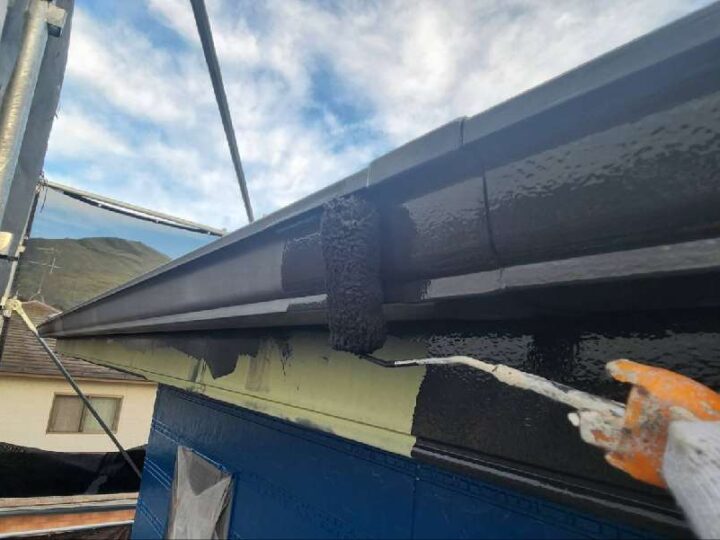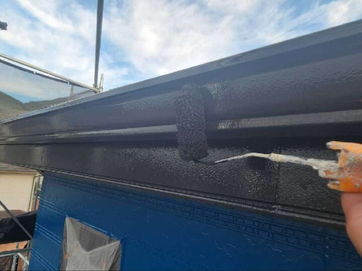 ムラが無いように均一に塗布していきます。【軒樋】上塗り2回目