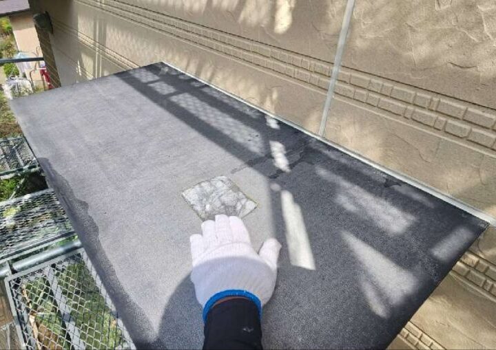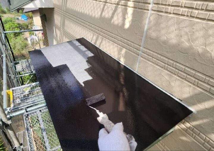 雨ざらしになる庇も、錆止めを塗布し、錆の発生を抑制します。【庇】上塗り1回目