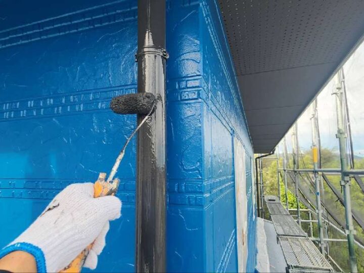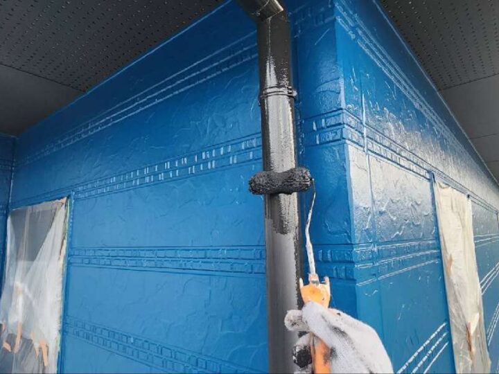 均等な厚みになるように塗装をおこないます。【竪樋】上塗り2回目