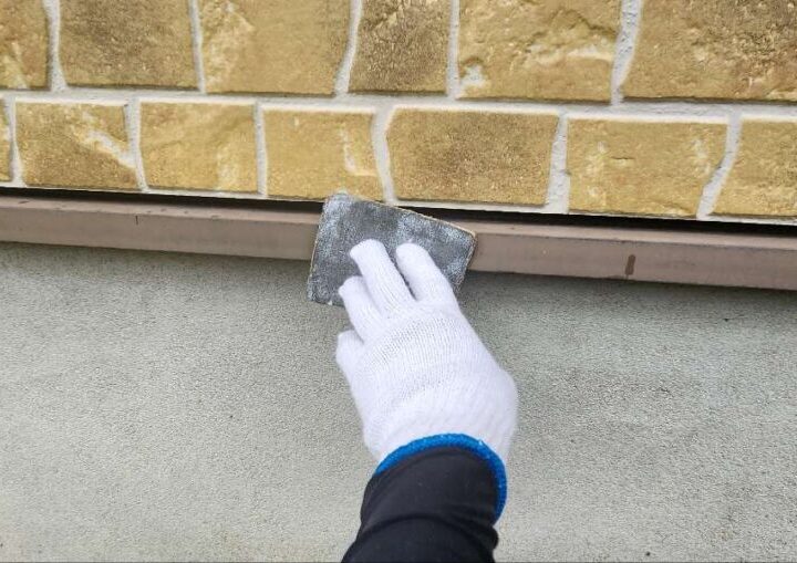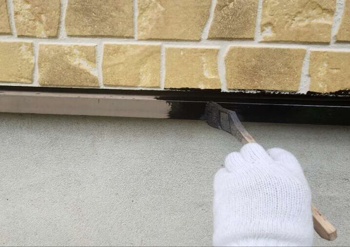 細かい部分は刷毛で塗布していきます。【水切り】上塗り2回目