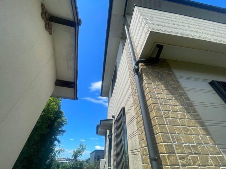 今回は竪樋(雨樋)と庇、水切りと言われる箇所の塗装作業です。