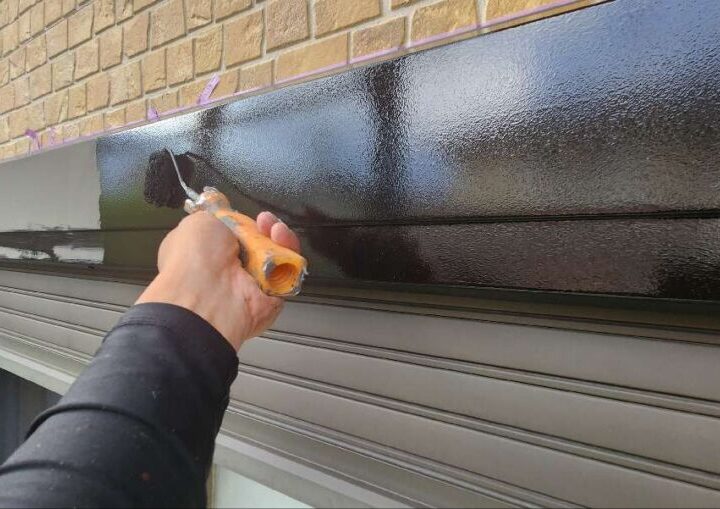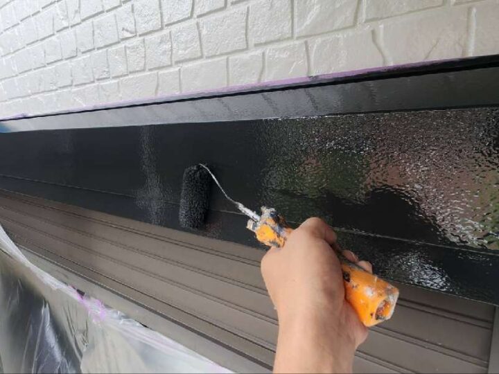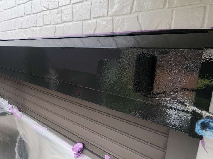 均等な厚みになるように塗装をおこないます。【シャッターボックス】上塗り2回目