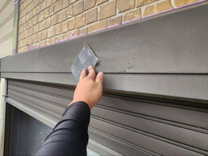 ケレン作業とは汚れと取り除き、微細な傷を入れることで、塗料の密着性を高めます。【シャッターボックス】錆止め塗布