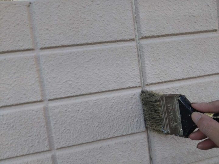 プライマーとは、下塗り用塗料の一種です。2面を接着させるボンドブレーカーを利用して底辺が接着しないように工夫しています。【外壁】シーリング充填