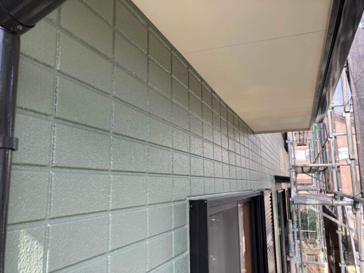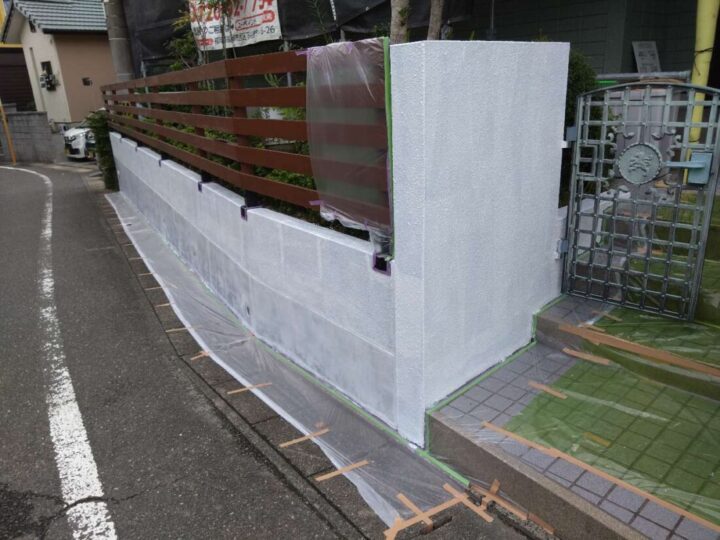 上塗りは、中塗りの塗りムラを塞いで塗膜に厚みを付け、仕上がりのきれいな外壁塗装を実現するとともに、外壁の耐久性と美観を高めます。【外塀】完了
