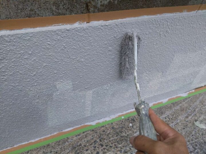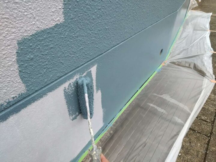下塗り塗料がしっかり乾いたら中塗りです。上塗りだけだとムラができてしまいますので必ず必要な工程です。【外塀】上塗り