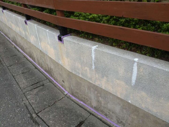 ひび割れが発生しているところを塗料を塗る前に修繕していきます。【外塀】下塗り