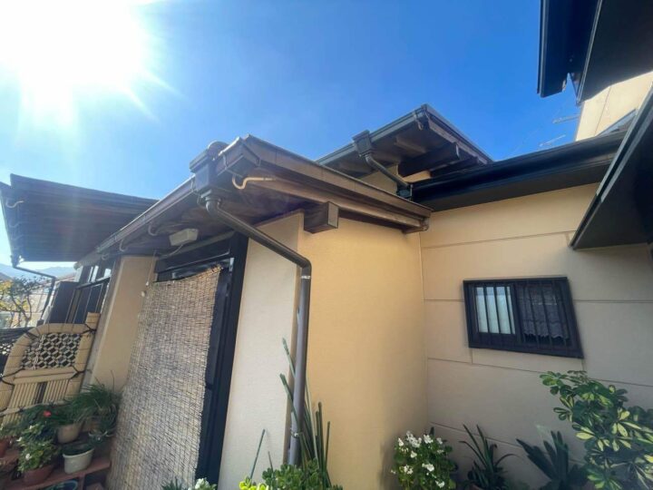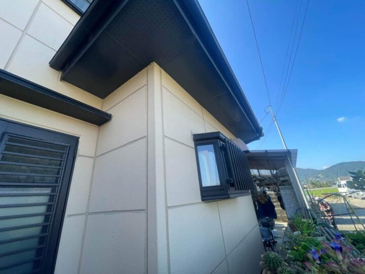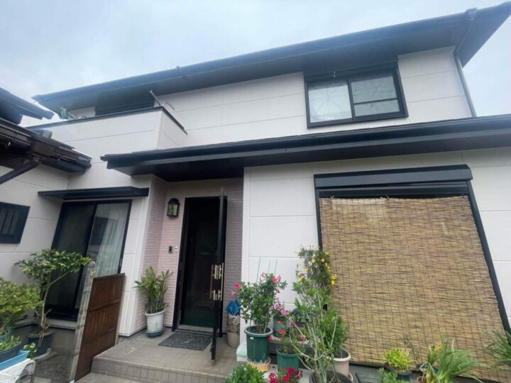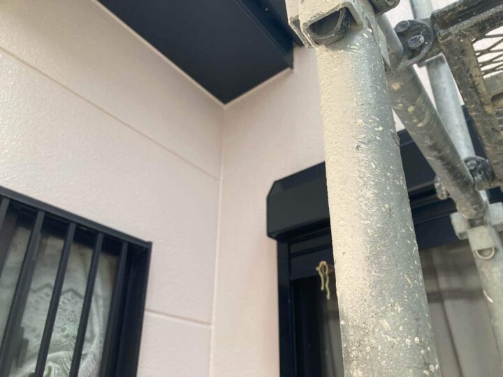 外壁塗装ではピンク系のお色で塗装をおこないました。