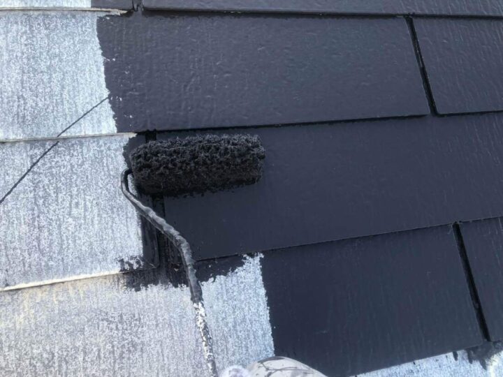 上塗りだけだとムラができてしまいますので必要な工程です。【屋根】上塗り