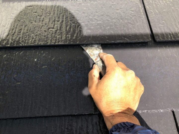 上塗りは、ムラを塞いで塗膜に厚みを付けて仕上がりのきれいな外壁塗装を実現します。屋根の耐久性と美観を高めます。【屋根】縁切り作業