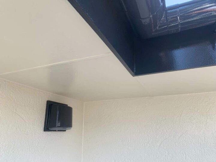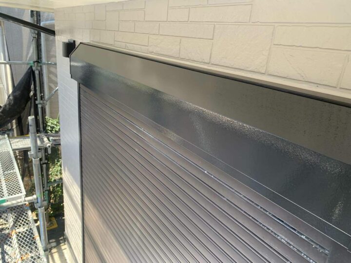 引き続き、軒天やフード、シャッター、帯もそれぞれケレン作業から上塗りまで丁寧に施工し、錆止めや仕上げ塗装で美しく長持ちする仕上がりにします。