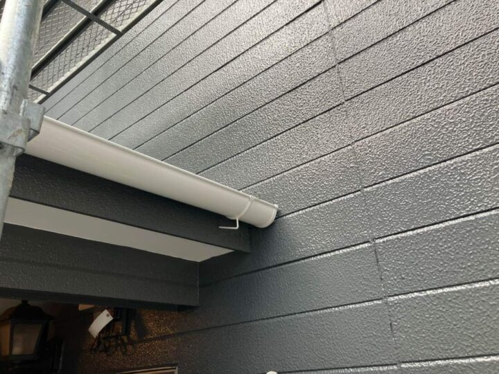 外壁塗装ではスレートグレーにアクセントでクールホワイトのラインを入れました。