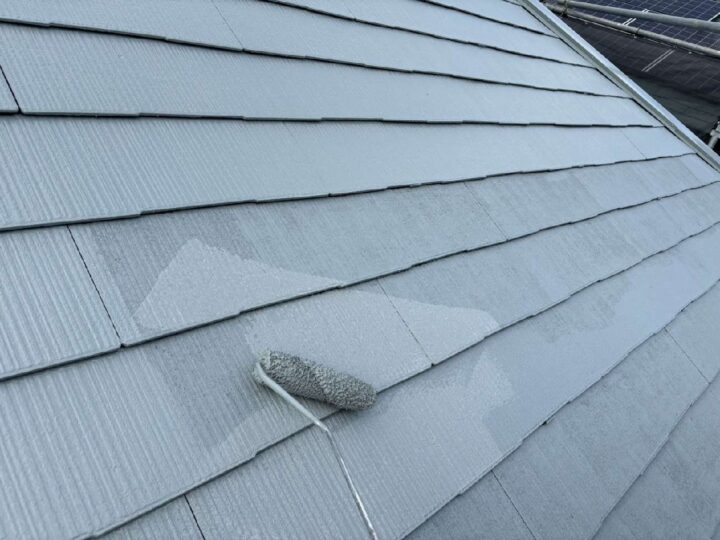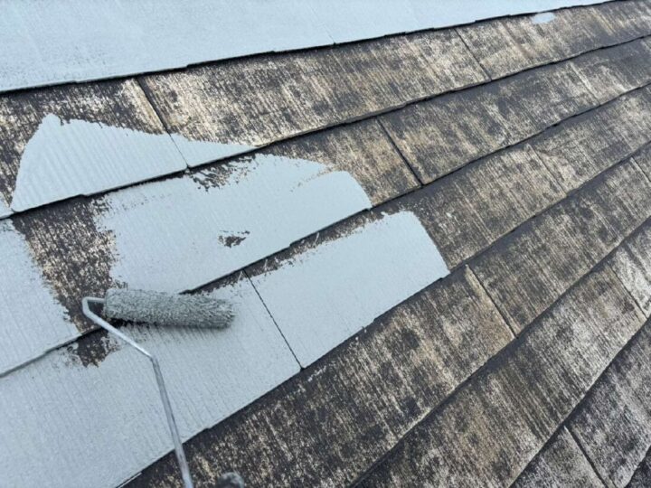 屋根最後の工程、上塗りです。しっかり乾かした後に仕上げの塗料を塗布します。【完了】