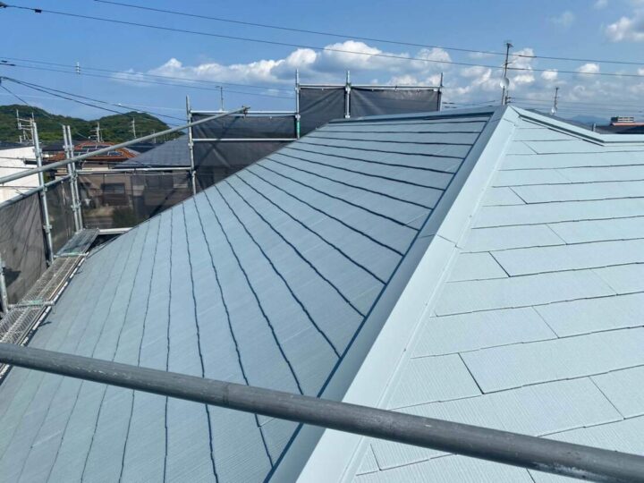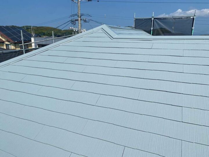 屋根塗装完了です。職人さんの丁寧な作業で綺麗になりました。外壁や付帯部の投稿もお楽しみに☆